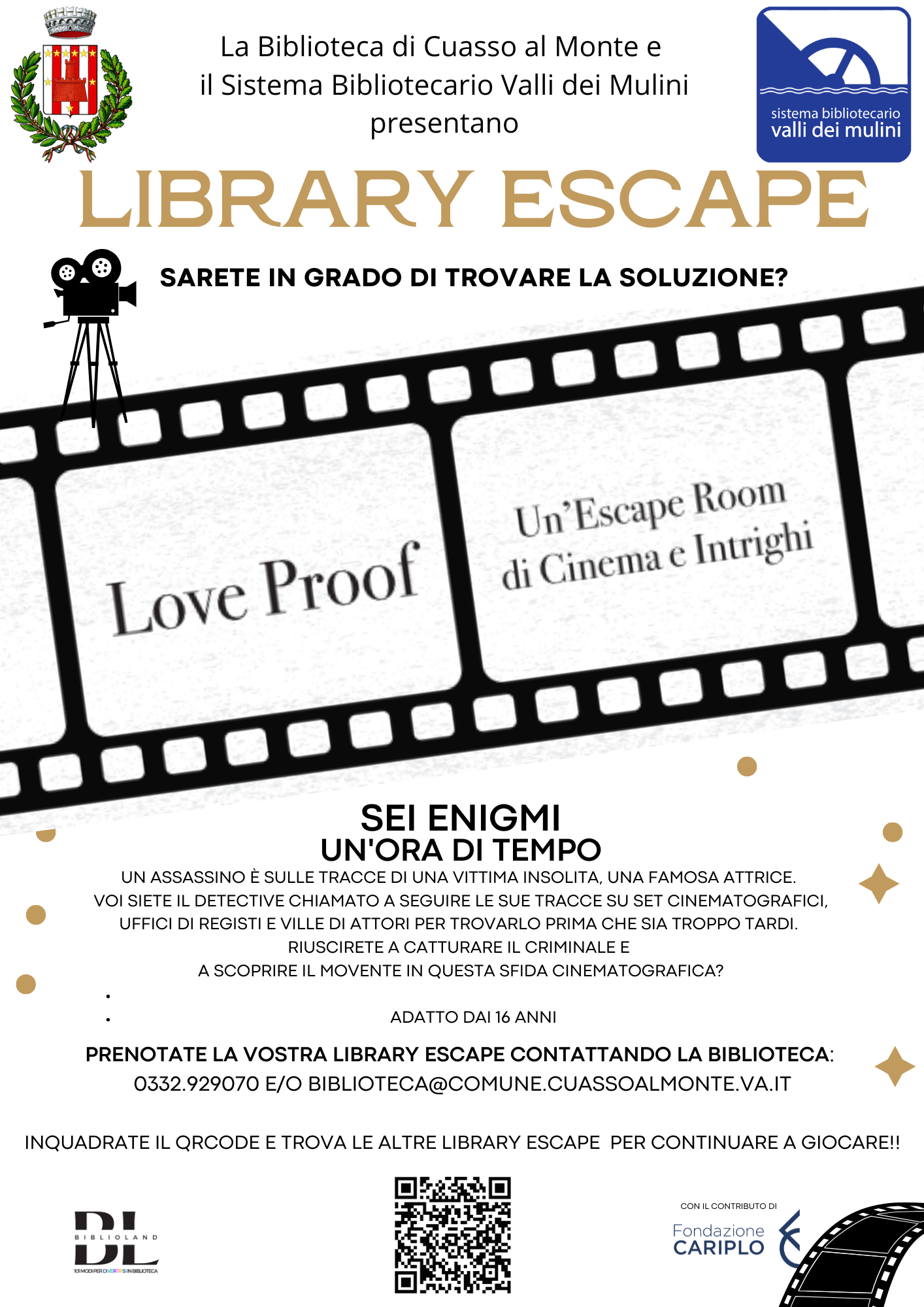 Il Sistema Bibliotecario, attraverso il progetto “BiblioLand – 101 cose da fare in biblioteca” finanziato da Fondazione Cariplo, ha sviluppato con il game designer Andrea Ruggeri 5 percorsi di “Library Escape” che verranno ospitati a turno dalle biblioteche del sistema!